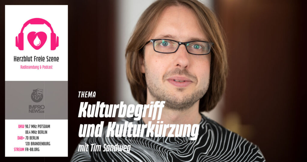 Die Januarsendung von Herzblut Freie Szene ist zum Nachhören auf Impro-News.de erschienen. Im Gespräch mit Tim Sandweg, dem Künstlerischen Leiter der Schaubude Berlin, diskutieren wir über die akuten Sparmaßnahmen im Kulturbereich auf Landes- und Bundesebene. Um die Argumentation der Berliner CDU-Regierung zu verstehen, braucht es eine notwendigen Verortung des Kulturbegriffs.